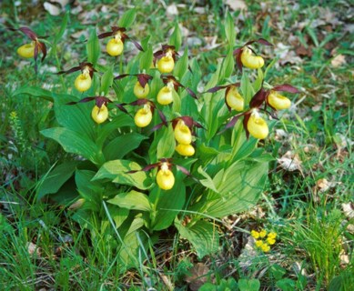 bereit hält: den Frauenschuh (Cypripedium calceolus). Diese Art kann hier ohne sie zu beeinträchtigen vom Wege